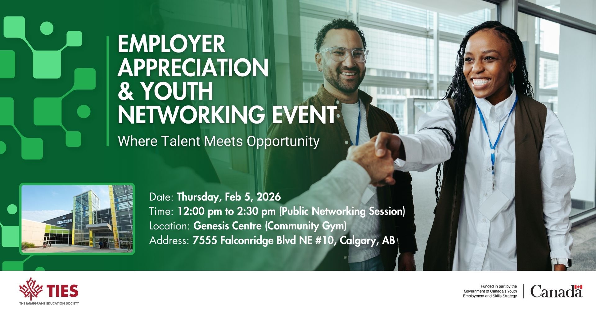 The Employer Appreciation & Youth Networking Event, being held on Feb. 5th at the Genesis Centre, is an exclusive opportunity to network with multiple employers, recruiters, and HR professionals.